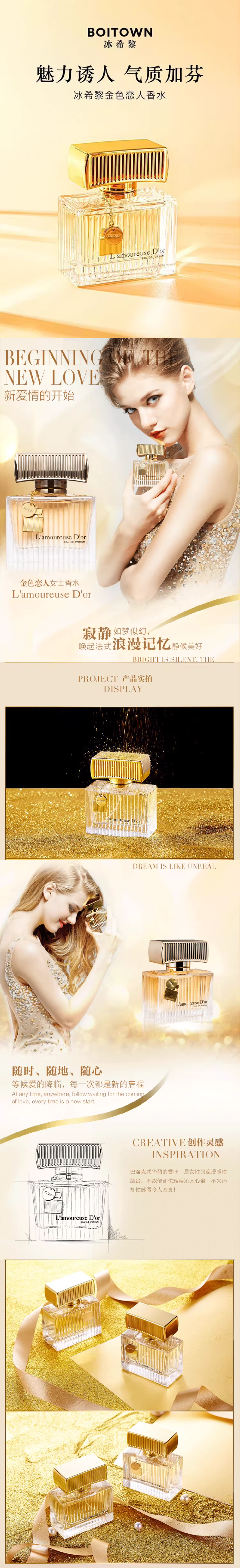 冰希黎金色戀人50ml女士香水持久清新淡香優雅網紅款禮物盒斬男香